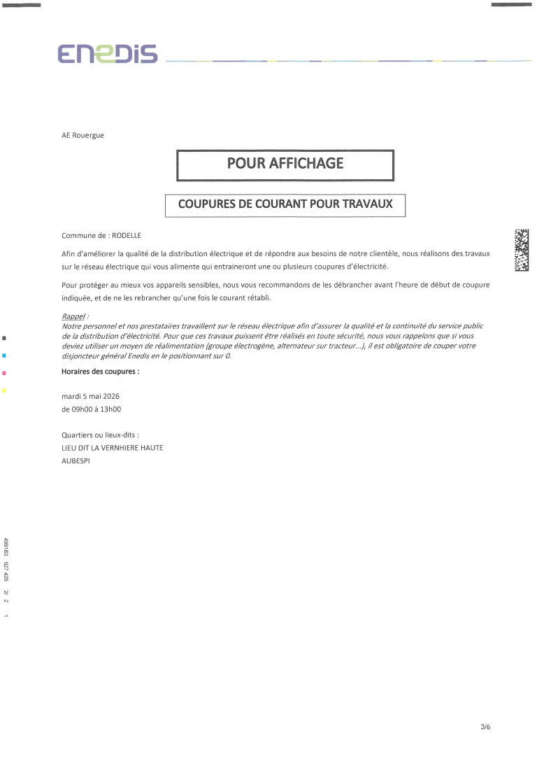 5 MAI : COUPURE DE COURANT POUR TRAVAUX