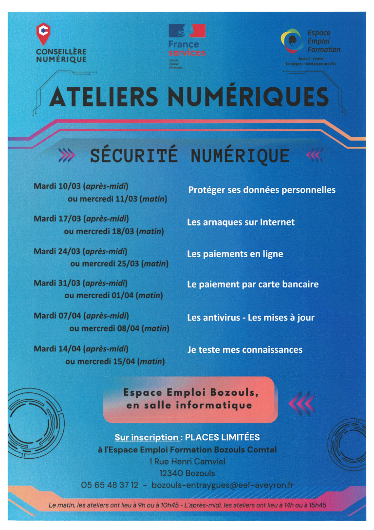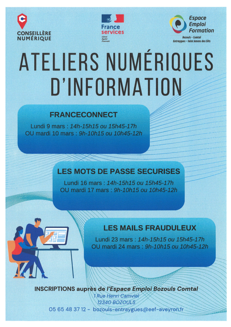 - Ateliers d’information : FranceConnect, Les mots de passe sécurités, Les mails frauduleux