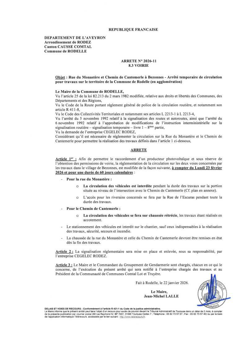 BEZONNES : ARRÊTÉ DE CIRCULATION POUR TRAVAUX