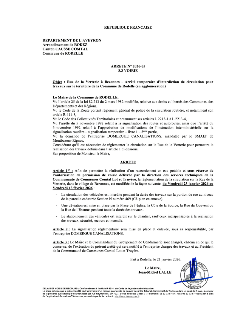 En raison de travaux de raccordement au réseau eau potable d’un terrain, la Rue de la Verterie à Bezonnes sera interdite à la circulation du Vendredi 23 janvier au Vendredi 13 février inclus.