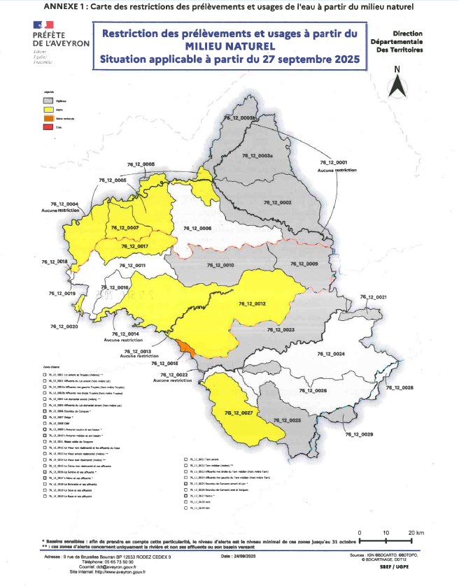 Prélèvements milieu naturel : Dourdou de Conques : aucune restriction