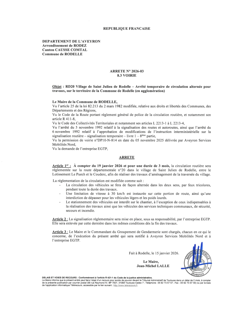 Les travaux d’aménagement de la traversée du village de Saint Julien de Rodelle vont débuter le Lundi 19 janvier prochain, pour une durée de 3 mois.